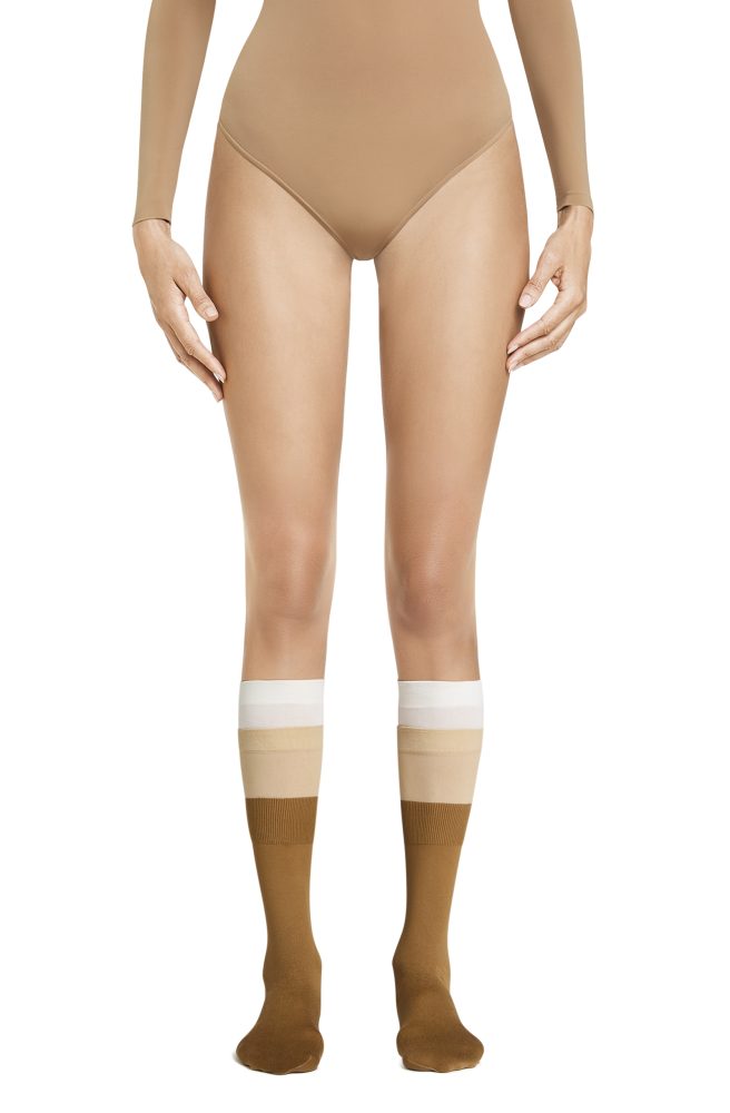 60 den, multicolor, boarded. Logo knitted on the toe. Made in Italy.