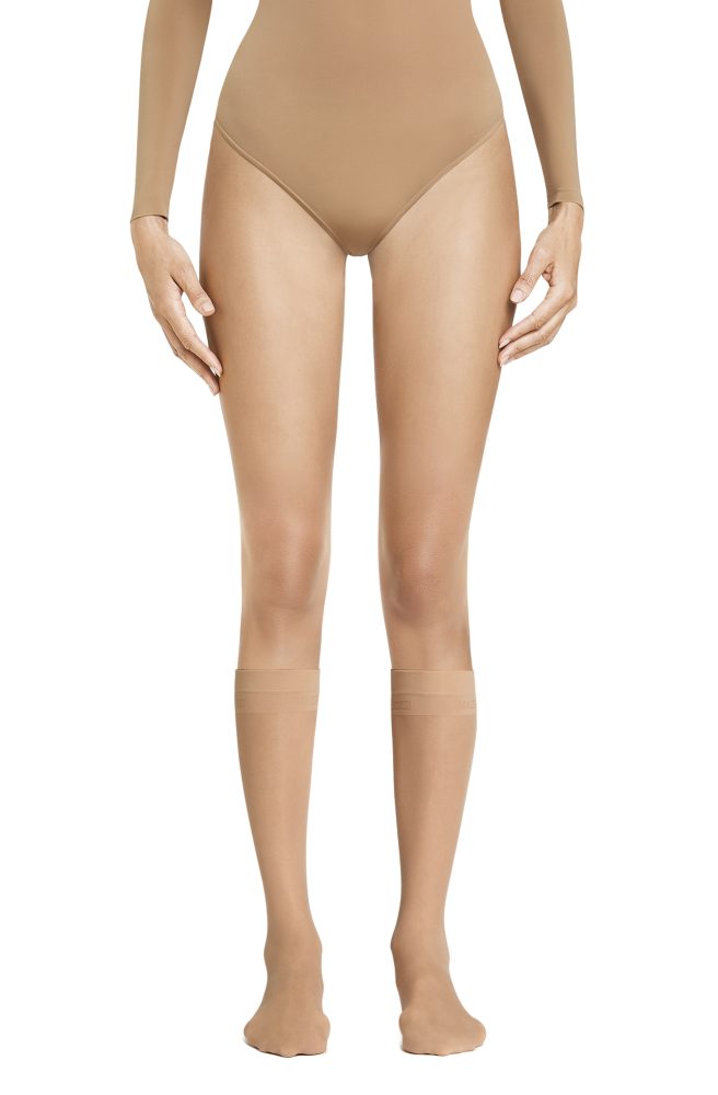 20 den, double covered, tone-on-tone, fully boarded. Logo knitted on the toe. Made in Italy.