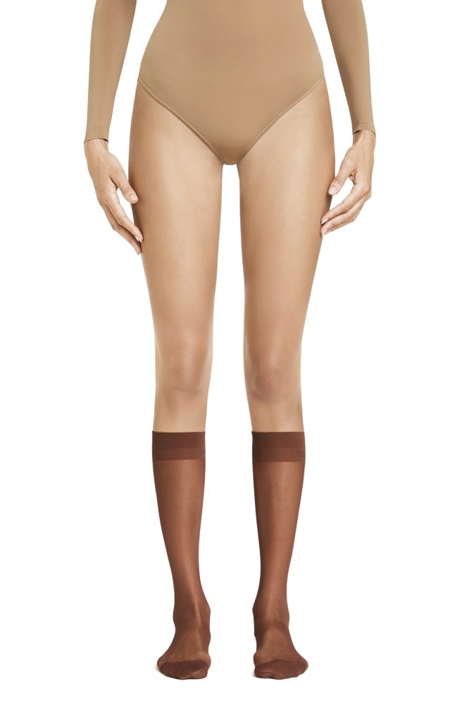 20 den, double covered, tone-on-tone, fully boarded. Logo knitted on the toe. Made in Italy.