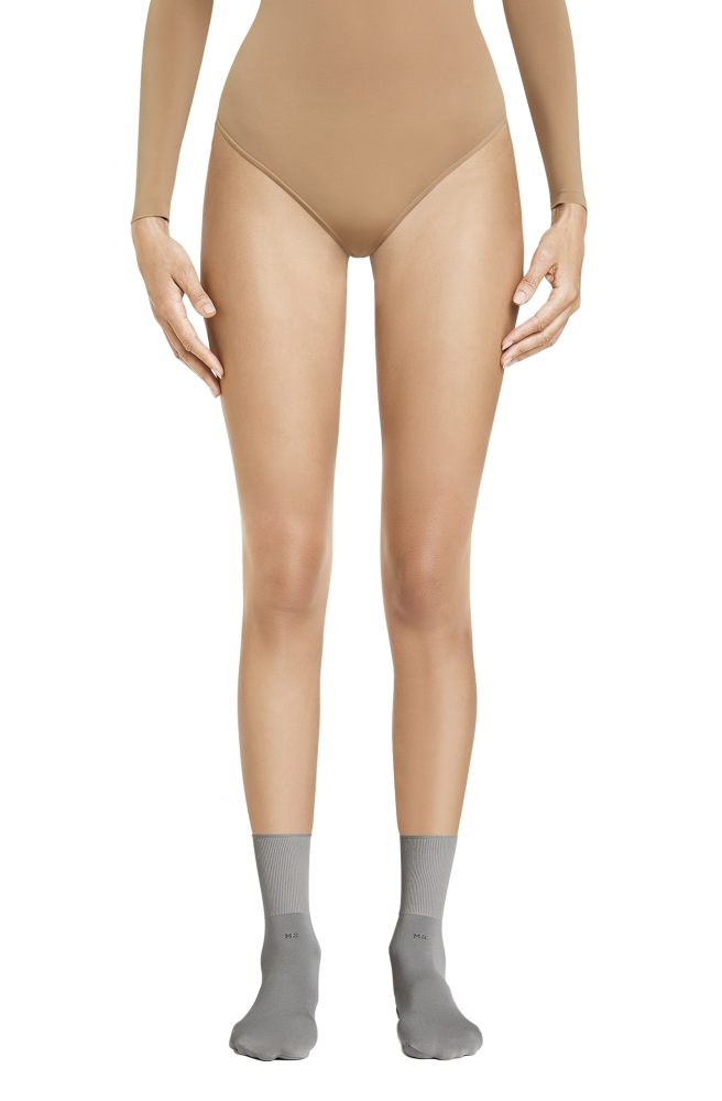 60 den, 3D, boarded, high top elastic. Logo knitted in the back under the elastic. Made in Italy.