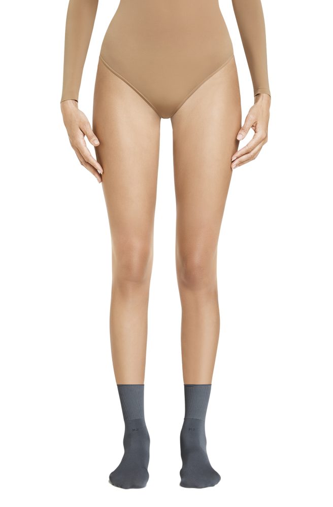 60 den, 3D, boarded, high top elastic. Logo knitted in the back under the elastic. Made in Italy.