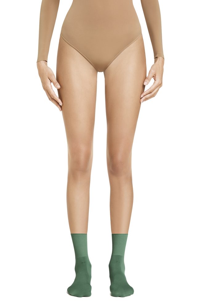 60 den, 3D, boarded, high top elastic. Logo knitted in the back under the elastic. Made in Italy.