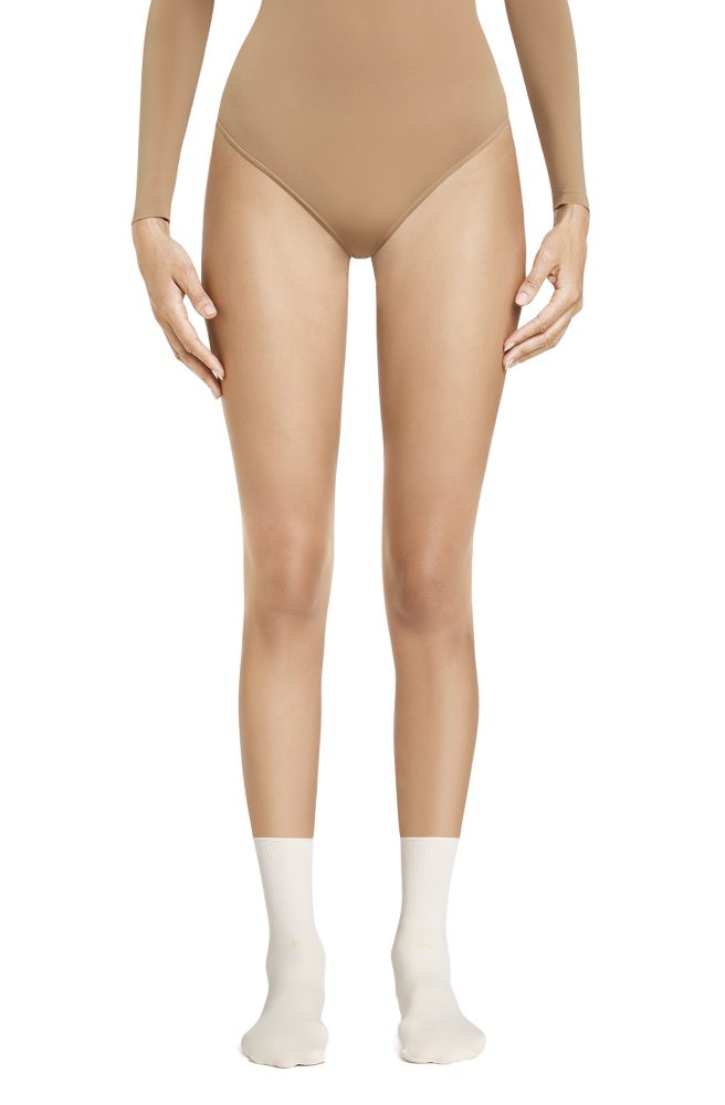 60 den, 3D, boarded, high top elastic. Logo knitted in the back under the elastic. Made in Italy.