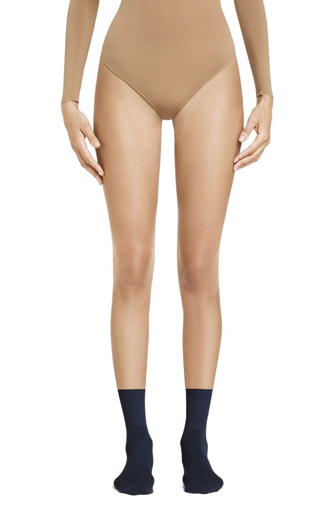 60 den, 3D, boarded, high top elastic. Logo knitted in the back under the elastic. Made in Italy.