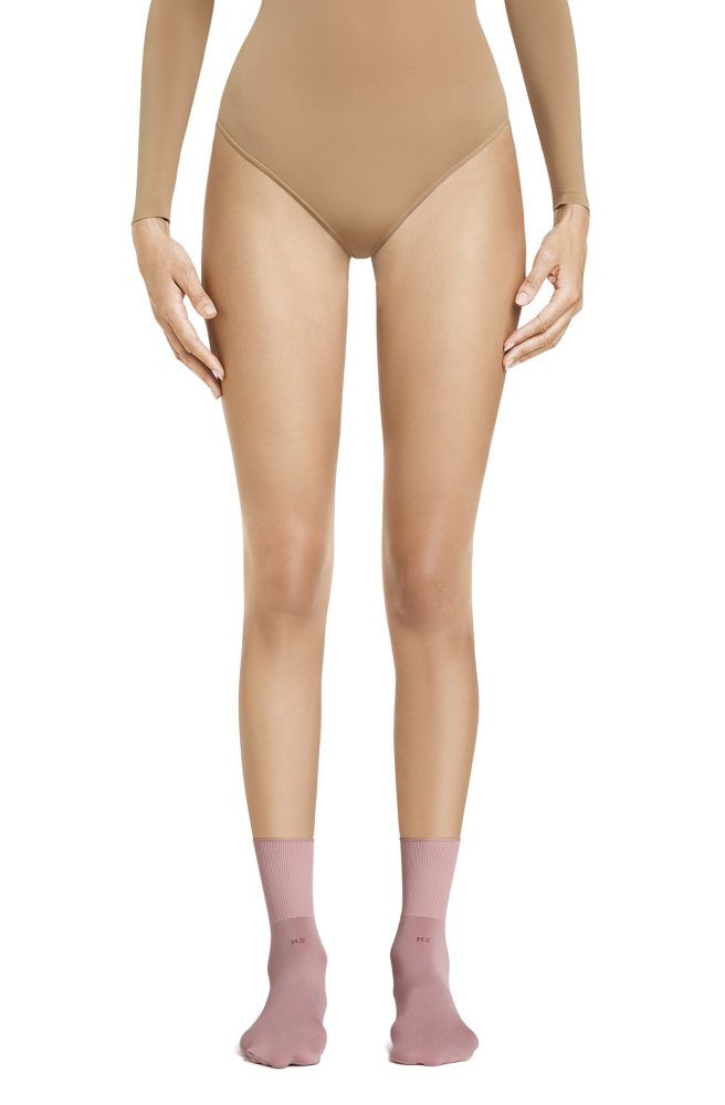 60 den, 3D, boarded, high top elastic. Logo knitted in the back under the elastic. Made in Italy.