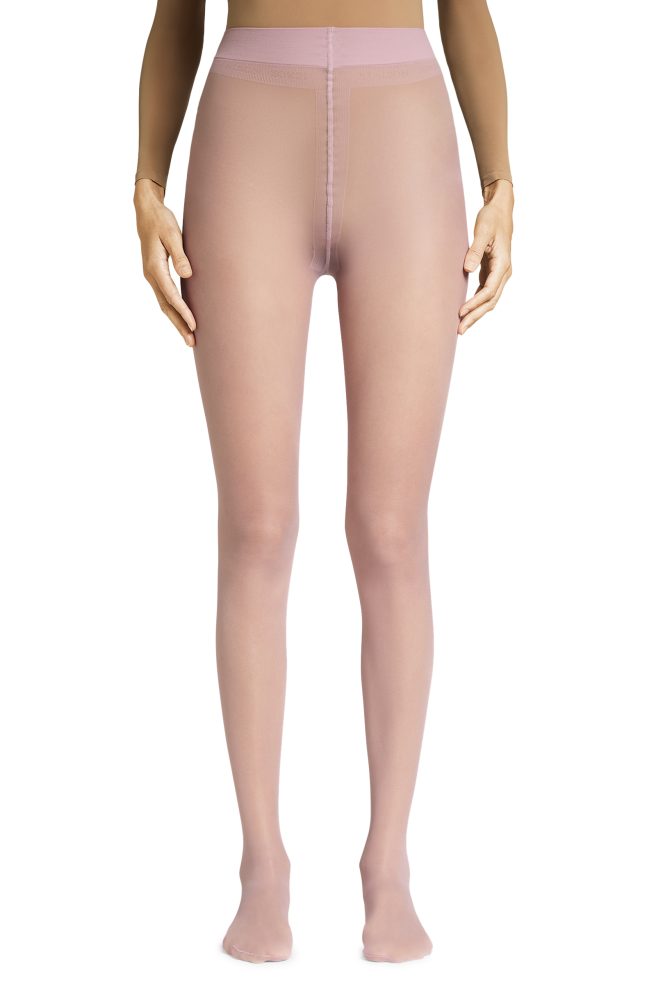 20 den, double covered, tone-on-tone, flat seam, no gusset, fully boarded. Logo knitted under the elasticized waistband. Made in Italy.