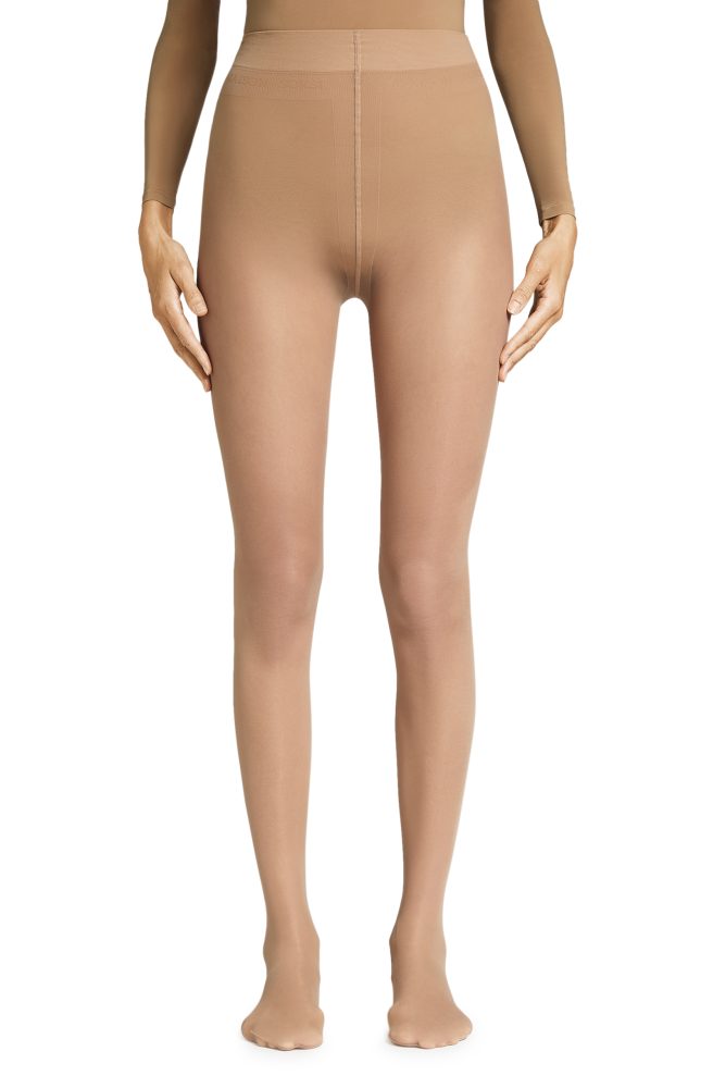 20 den, double covered, tone-on-tone, flat seam, no gusset, fully boarded. Logo knitted under the elasticized waistband. Made in Italy.