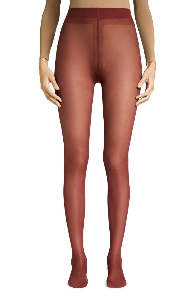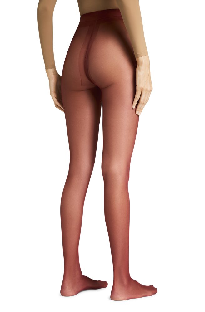 20 den, double covered, tone-on-tone, flat seam, no gusset, fully boarded. Logo knitted under the elasticized waistband. Made in Italy.