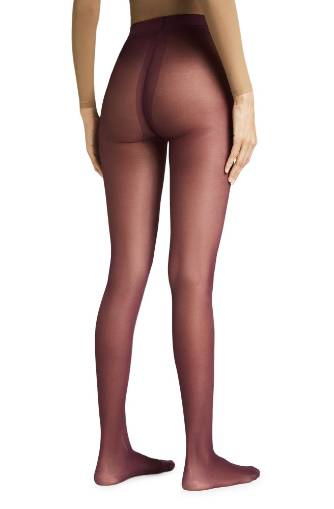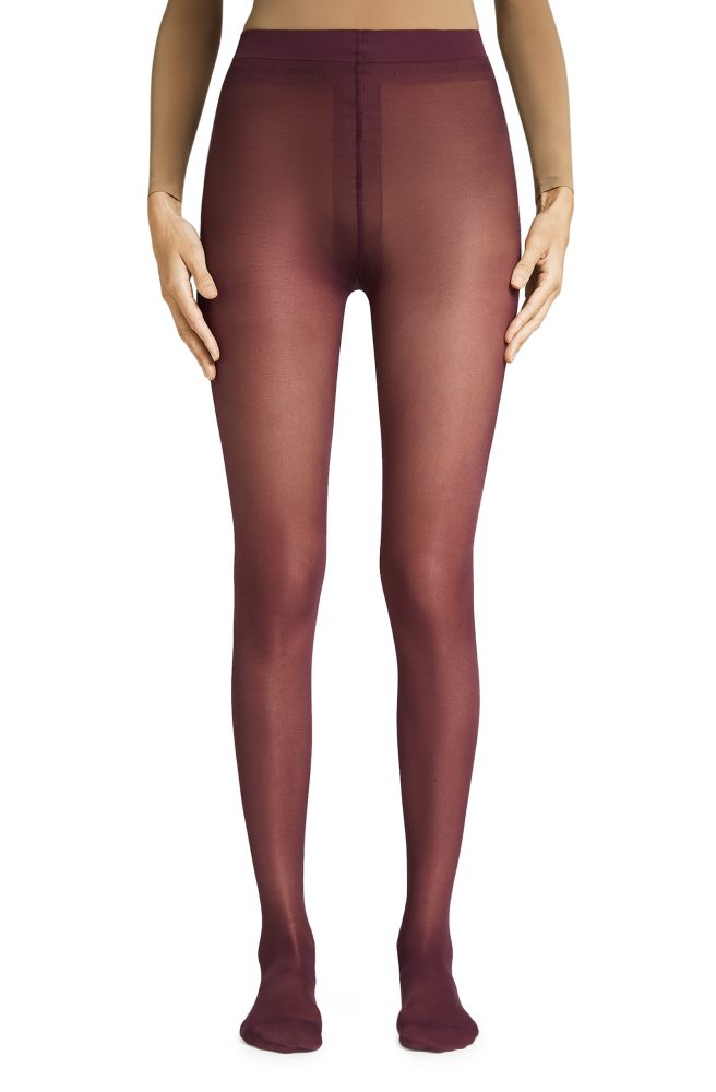 30 den, double covered, tone-on-tone, flat seam, no gusset, fully boarded. Logo knitted under the elasticized waistband. Made in Italy.
