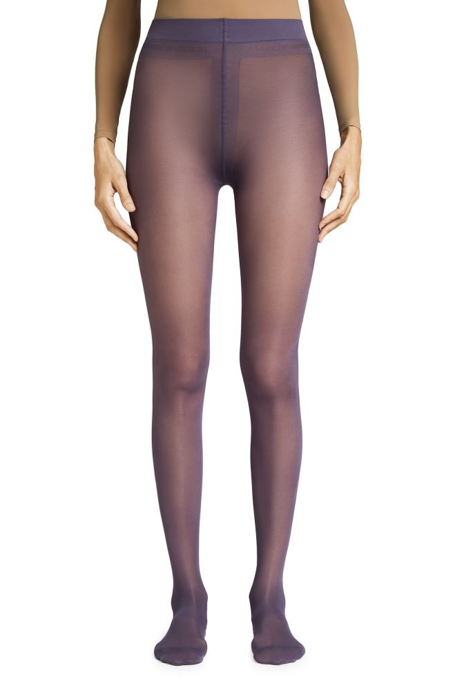 30 den, double covered, tone-on-tone, flat seam, no gusset, fully boarded. Logo knitted under the elasticized waistband. Made in Italy.