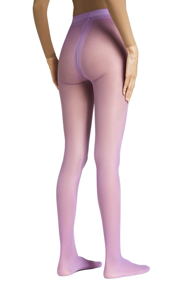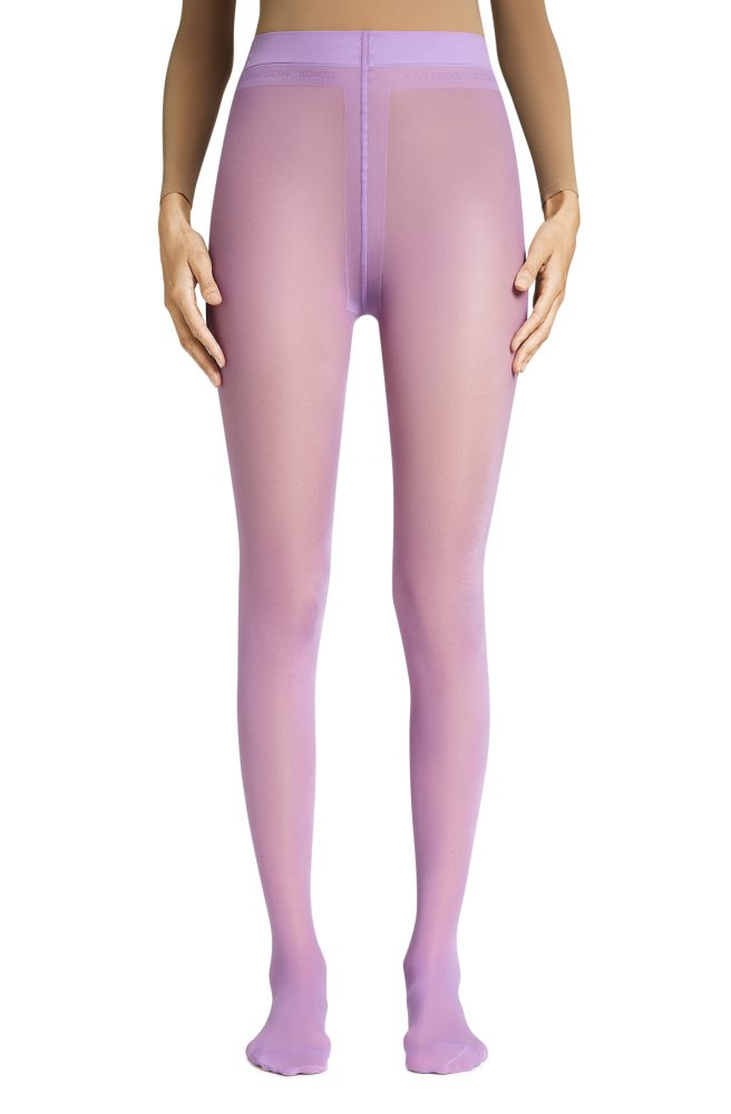 30 den, double covered, tone-on-tone, flat seam, no gusset, fully boarded. Logo knitted under the elasticized waistband. Made in Italy.