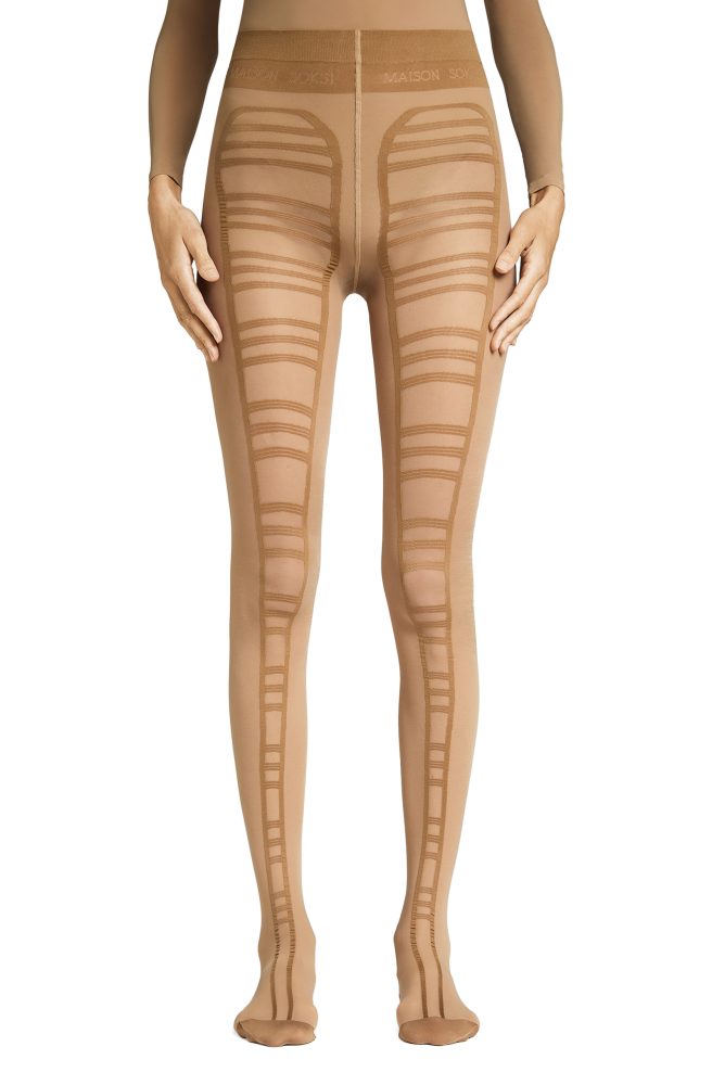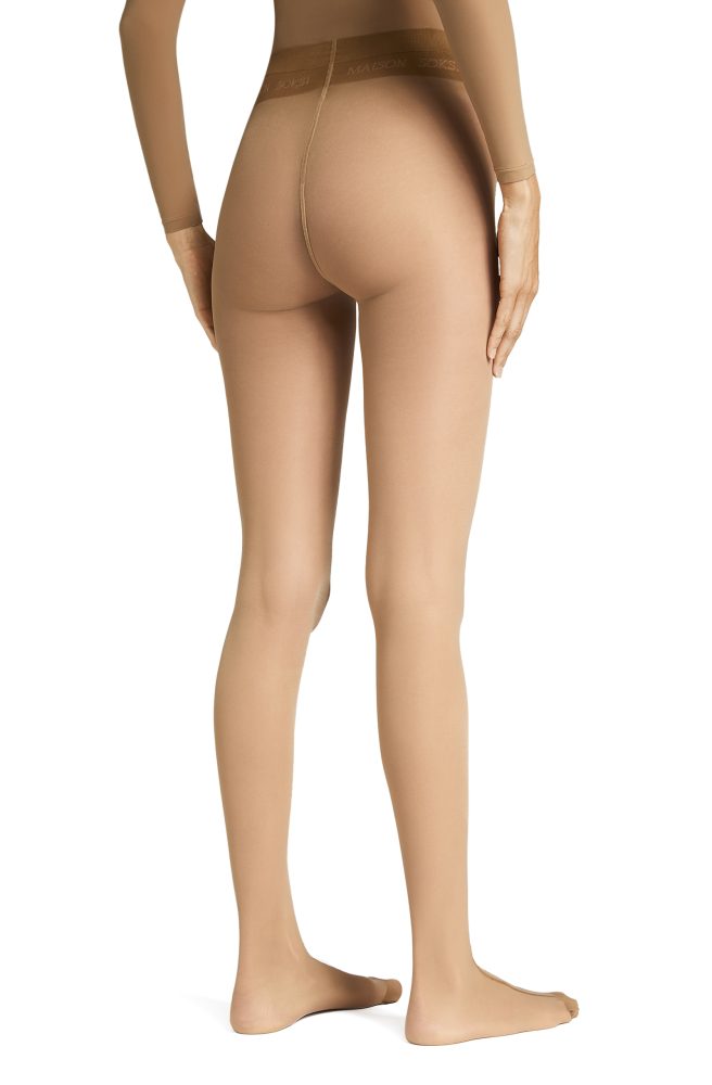 30 den, double covered, deeping, flat seam, no gusset, fully boarded. Logo knitted under the elasticized waistband. Made in Italy.