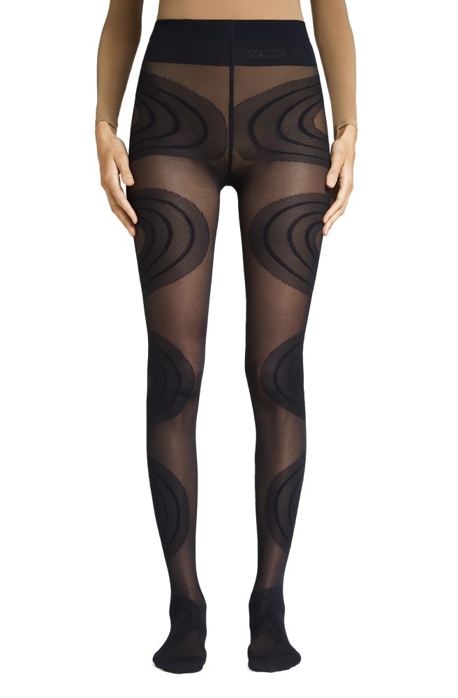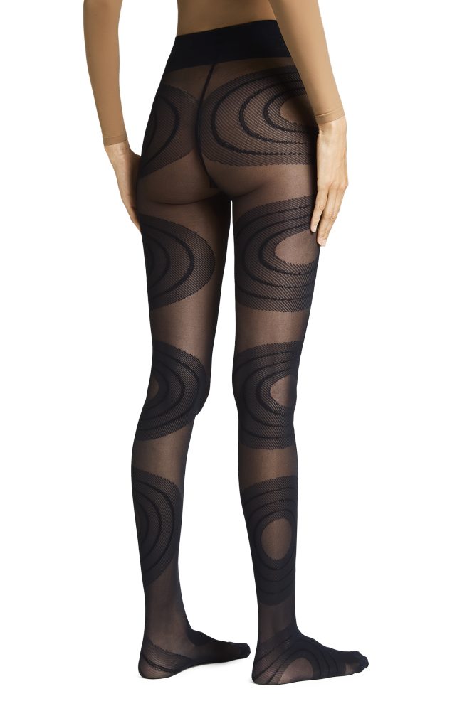 30 den, double covered, deeping, flat seam, no gusset, fully boarded. Logo knitted under the elasticized waistband. Made in Italy.