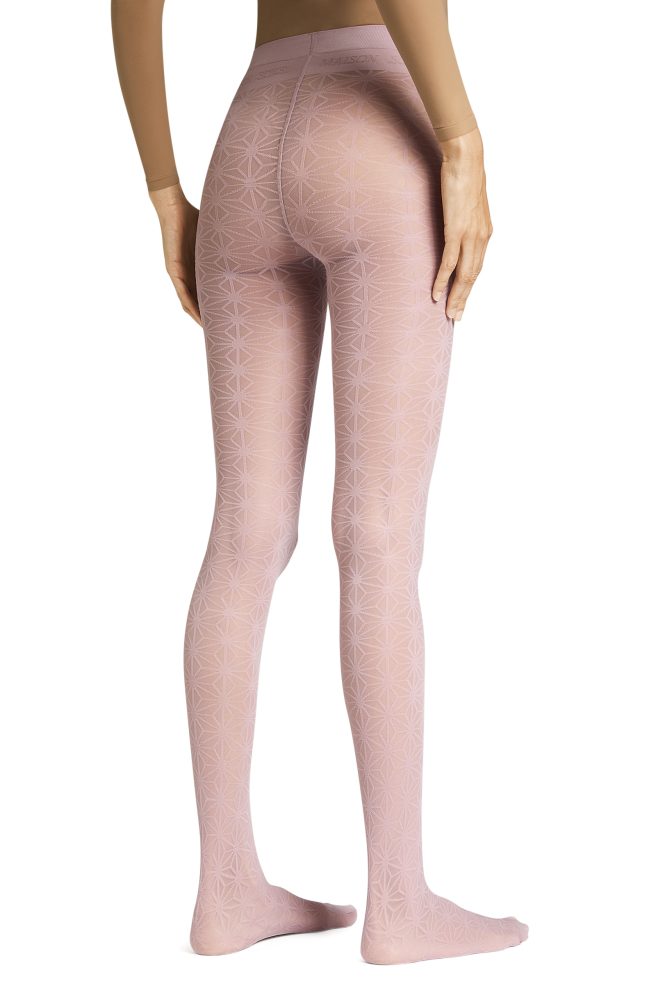 30 den, double covered, deeping, flat seam, no gusset, fully boarded. Logo knitted under the elasticized waistband. Made in Italy.
