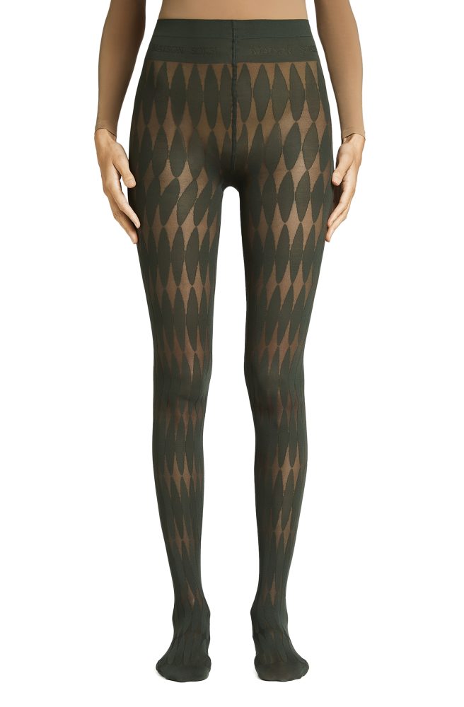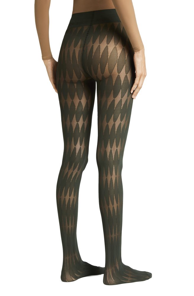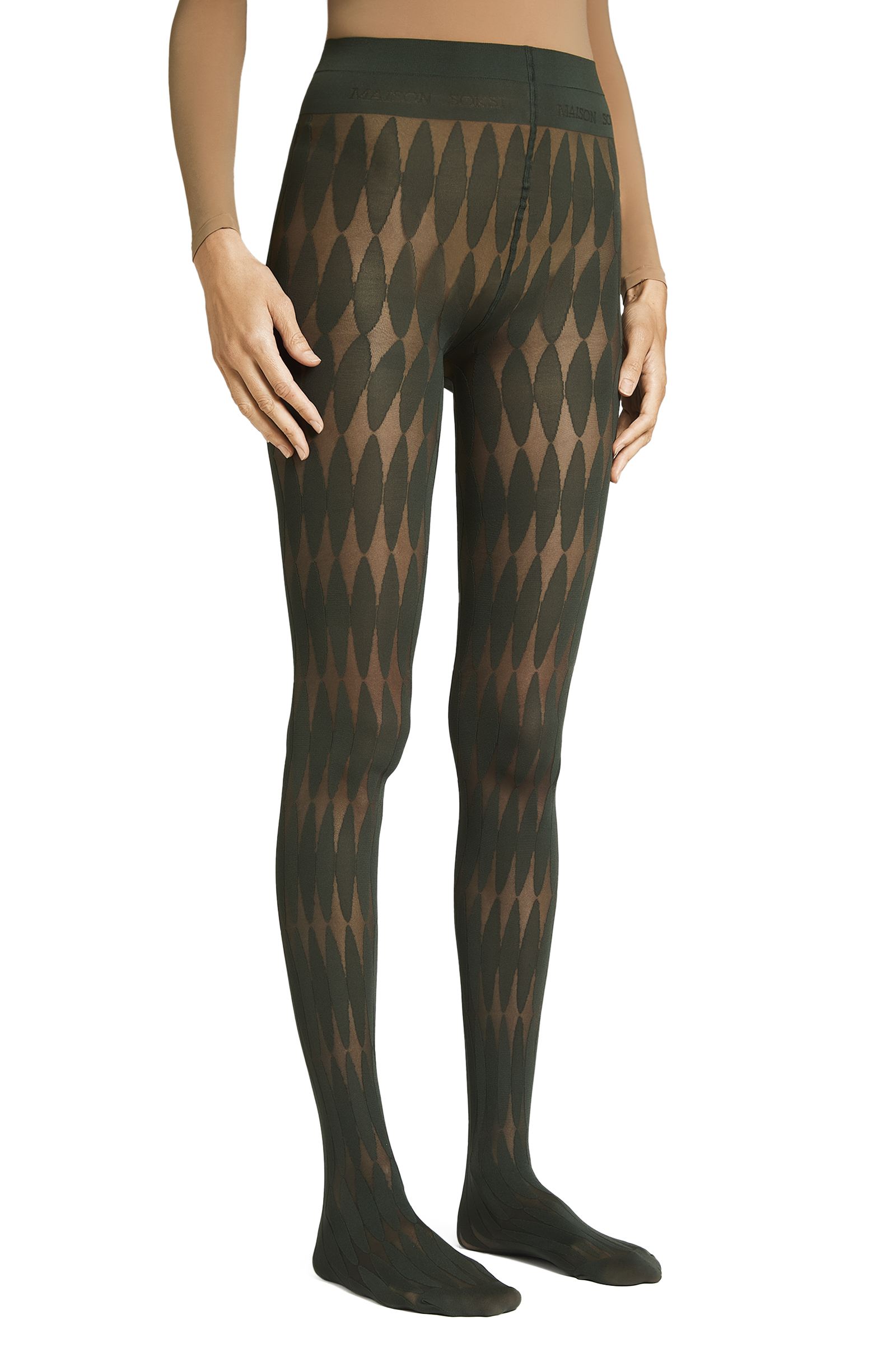 30 den, double covered, tone-on-tone, flat seam, no gusset, fully boarded. Logo knitted under the elasticized waistband. Made in Italy.