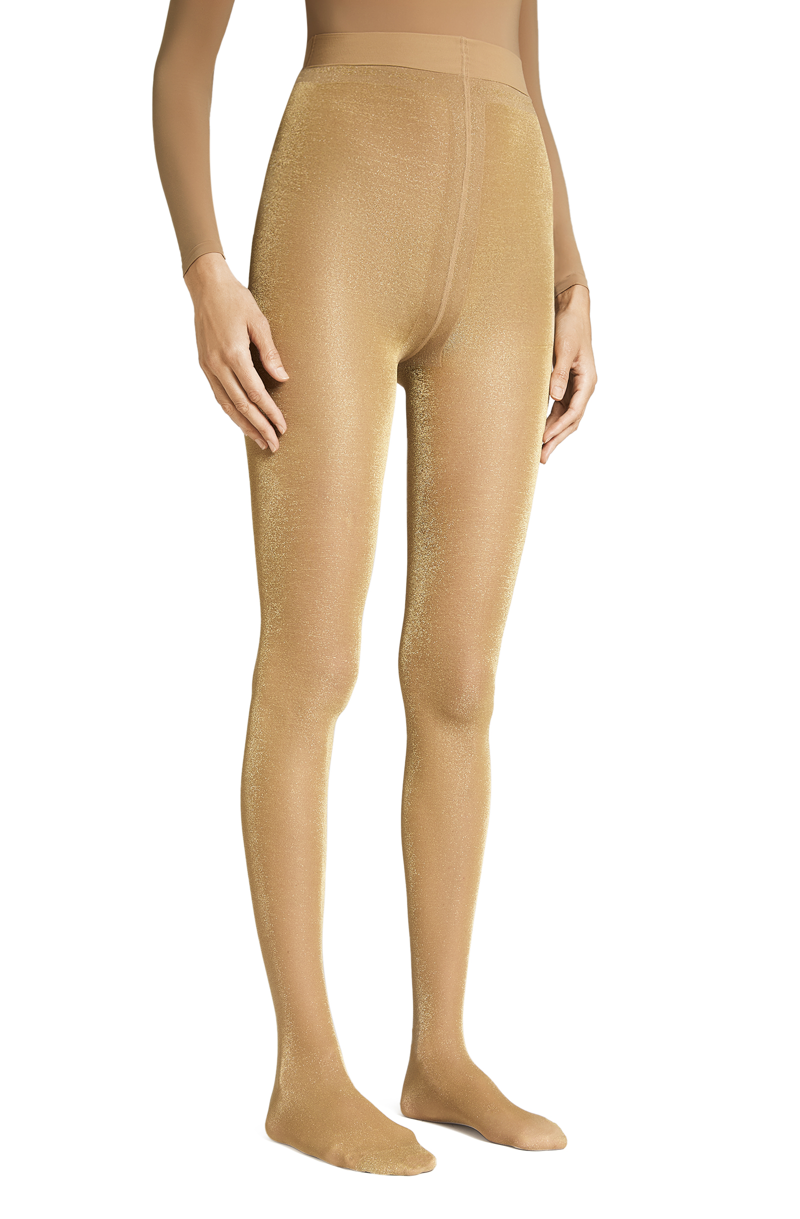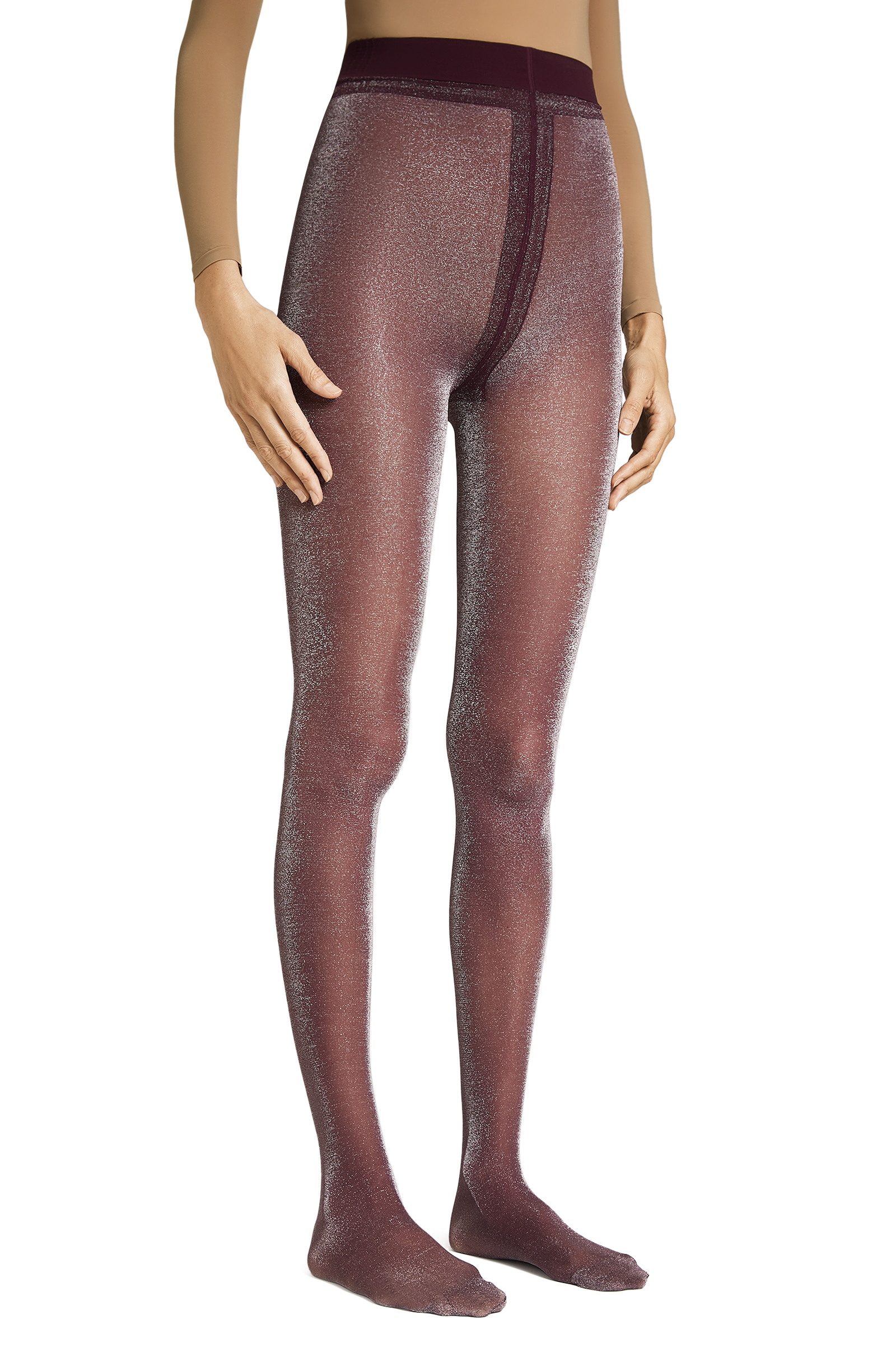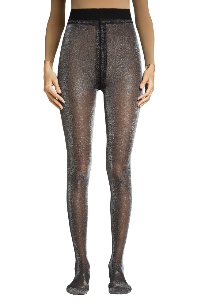 30 den, tone-on-tone, flat seam, no gusset, fully boarded. Logo knitted under the elasticized waistband. Made in Italy.