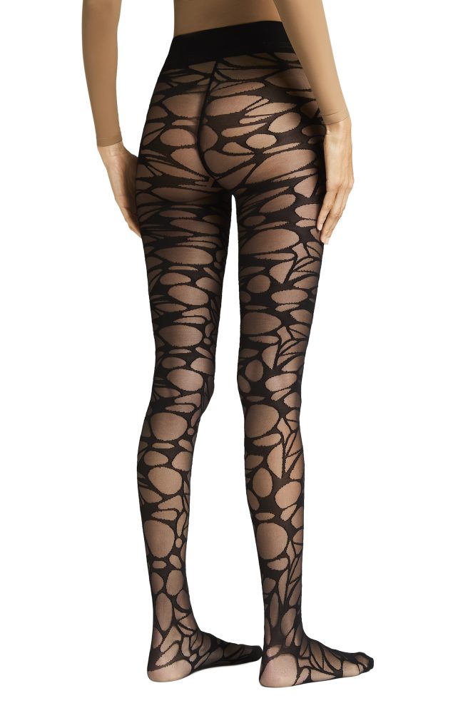 15 den 3D, tone-on-tone, flat seam, no gusset, fully boarded. Logo knitted under the elasticized waistband. Made in Italy.
