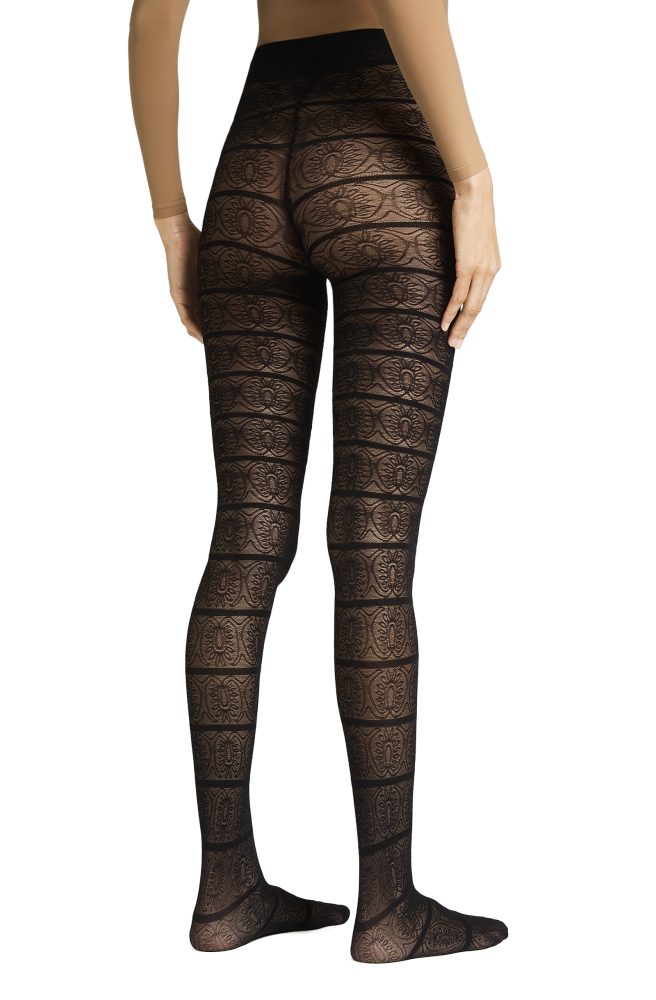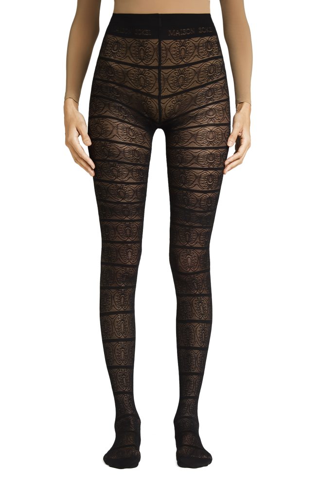 55 den, deeping, flat seam, no gusset, fully boarded. Logo knitted under the elasticized waistband. Made in Italy.