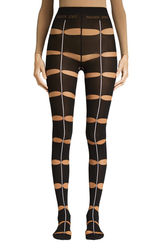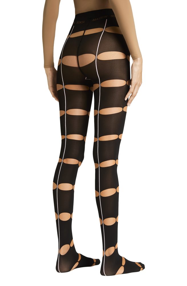 15 den 3D, multicolor, flat seam, no gusset, boarded. Logo knitted under the elasticized waistband. Made in Italy.