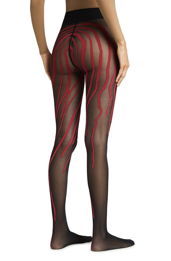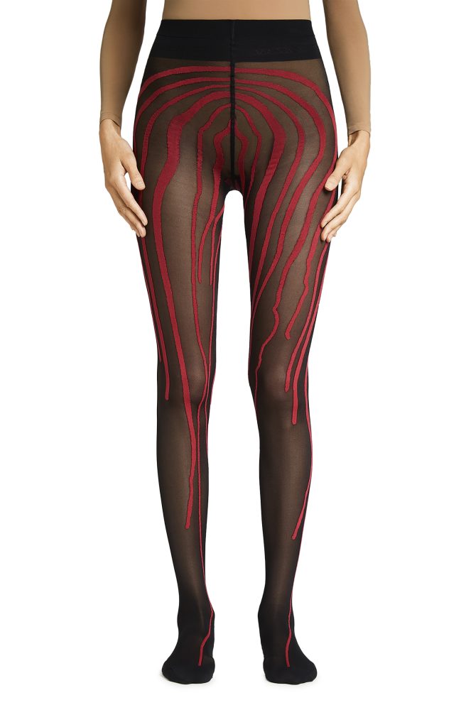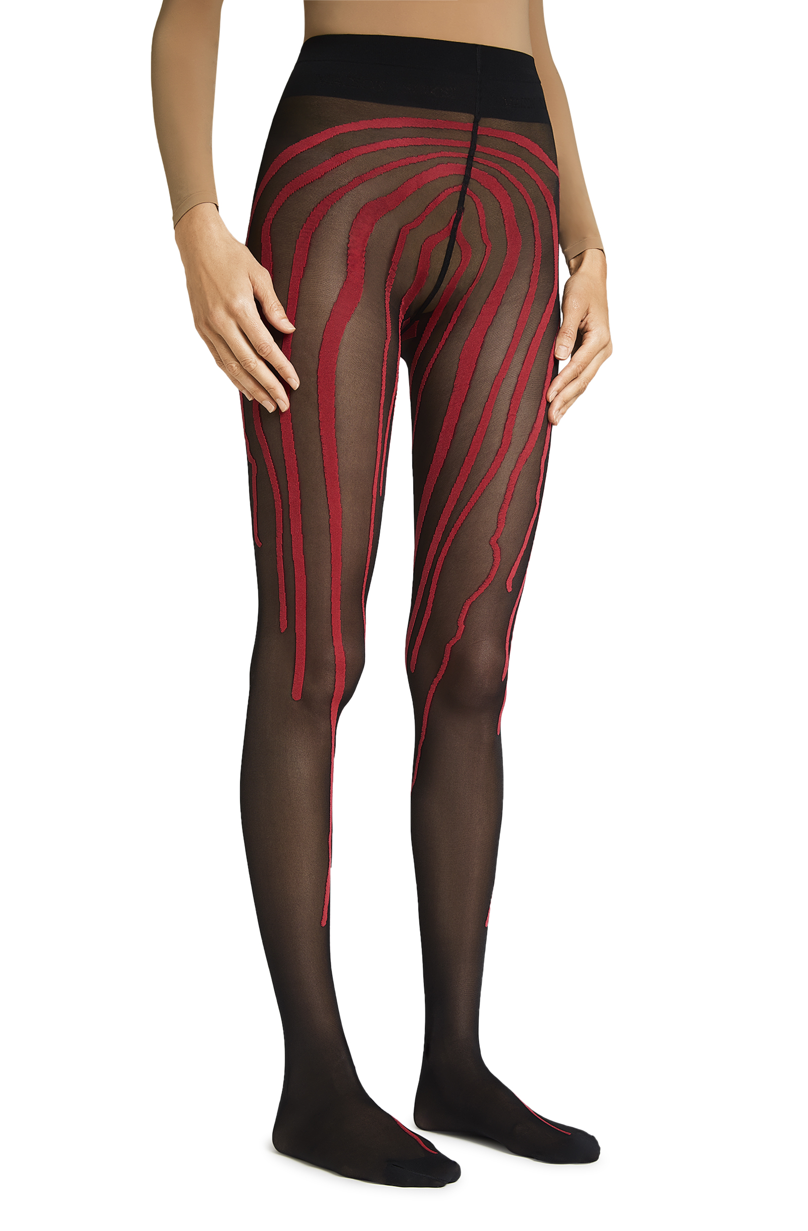 30 den, double covered, tone-on-tone, flat seam, no gusset, fully boarded. Logo knitted under the elasticized waistband. Made in Italy.