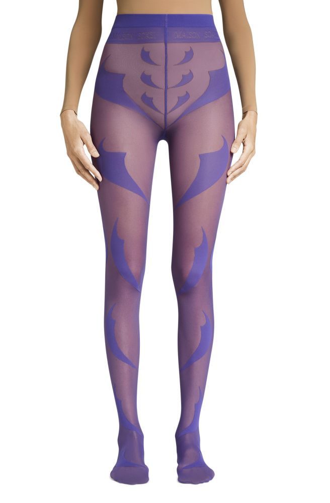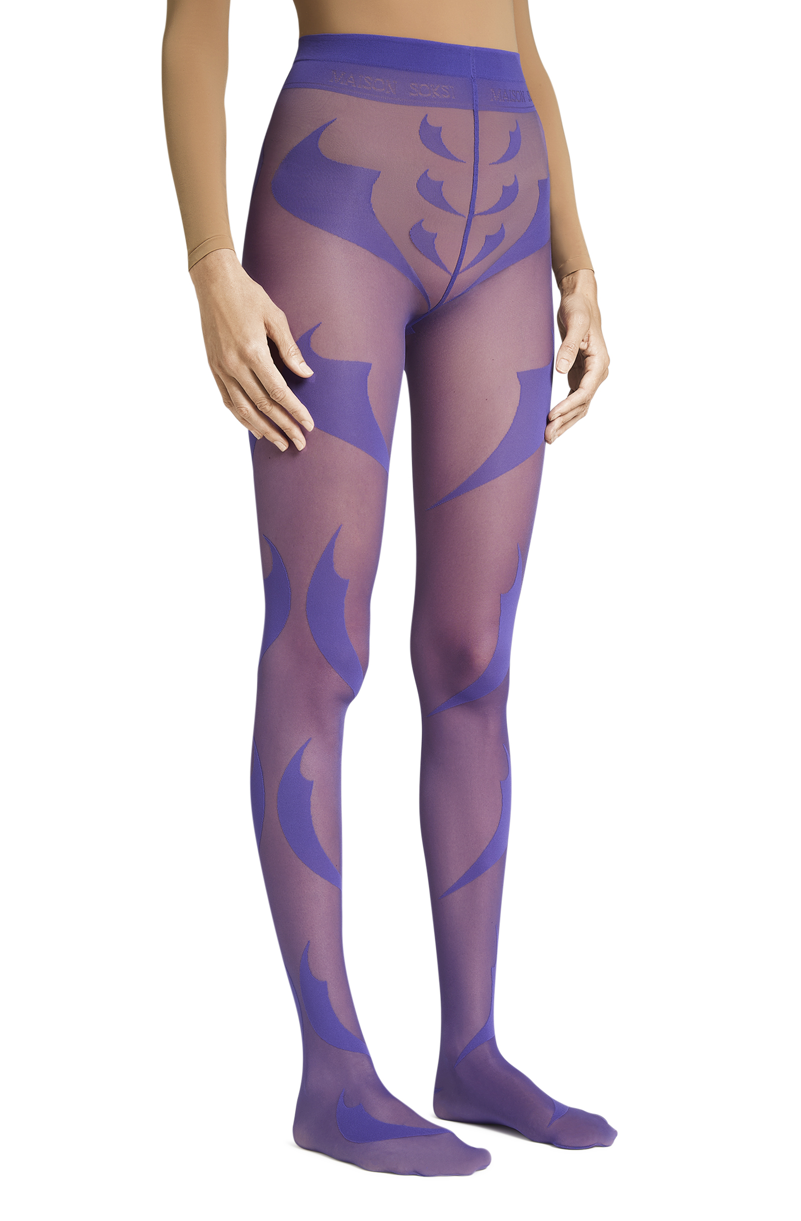 20 den, double covered, tone-on-tone, flat seam, no gusset, fully boarded. Logo knitted under the elasticized waistband. Made in Italy.