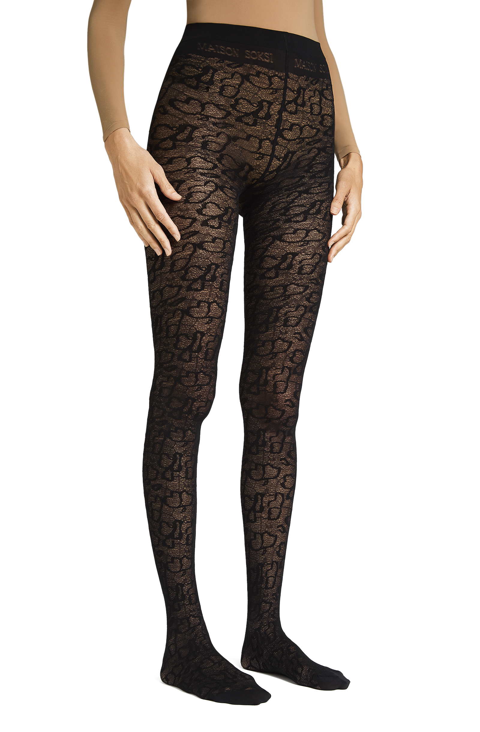 45 den 3D, double covered, deeping, flat seam, no gusset, fully boarded. Logo knitted under the elasticized waistband. Made in Italy.