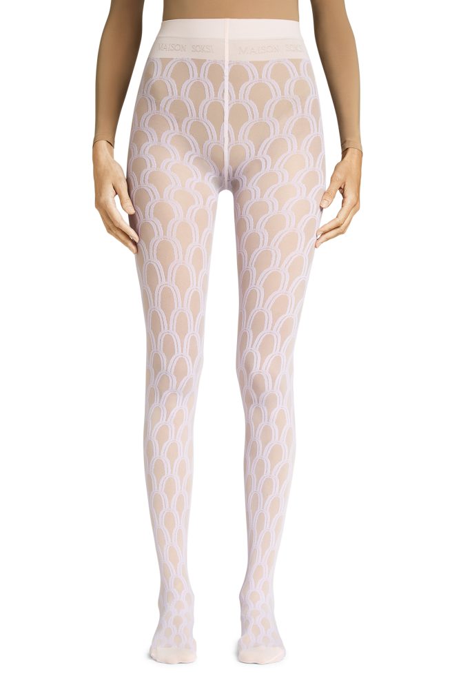 30 den, double covered, bicolor, flat seam, no gusset, fully boarded. Logo knitted under the elasticized waistband. Made in Italy.