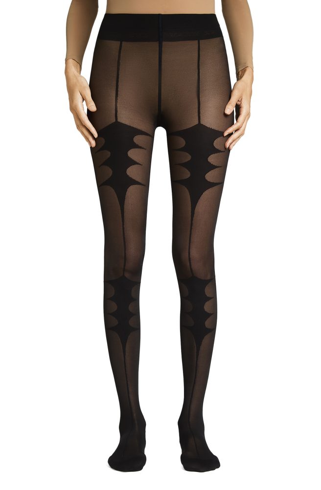 30 den, double covered, deeping, flat seam, no gusset, fully boarded. Logo knitted under the elasticized waistband. Made in Italy.