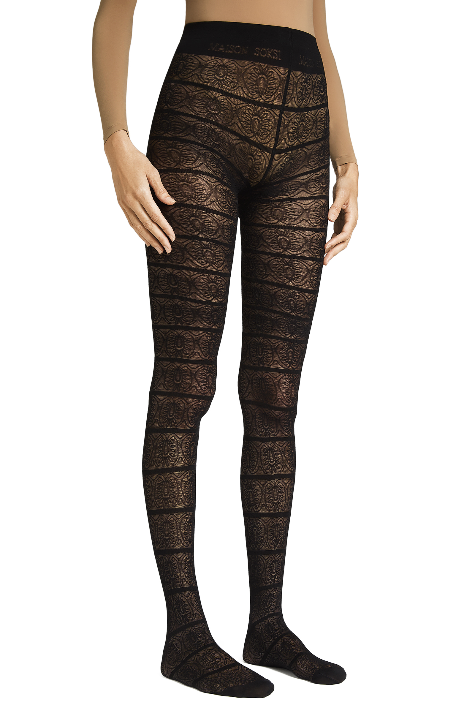 32 den, double covered, bicolor, flat seam, no gusset, fully boarded. Mid-rise. Elasticized waistband. Made in Italy.